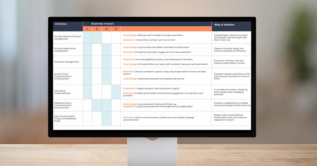 Our CARE framework ensures every roadmap initiative points to measurable business impact.